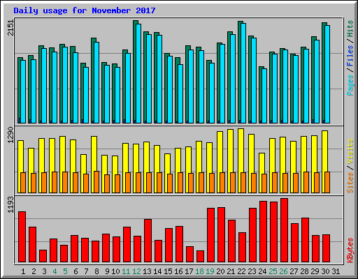 | Day | Hits | Files | Pages | Visits | Sites | KBytes | ||||||