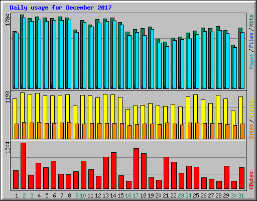 | Day | Hits | Files | Pages | Visits | Sites | KBytes | ||||||