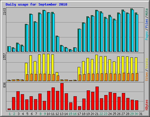 | Day | Hits | Files | Pages | Visits | Sites | KBytes | ||||||