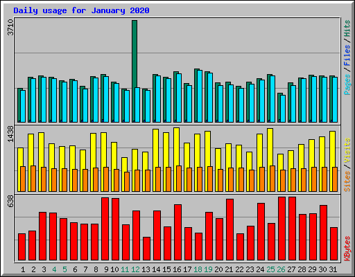 | Day | Hits | Files | Pages | Visits | Sites | KBytes | ||||||